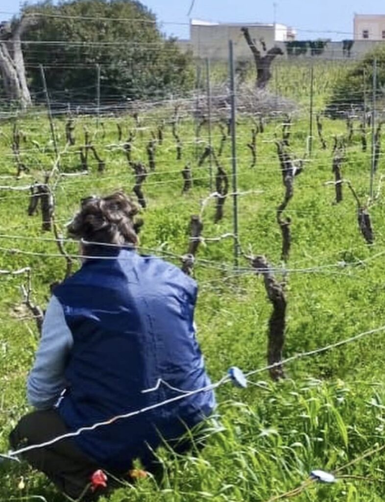wine to producing it, bringing a breath of fresh, modern air to the heart of Puglia. The estate is rooted in the pulsing heart of the Salice Salentino DOC, where Antonio tends to four hectares of vineyards dedicated exclusively to Negroamaro. Here, the absolute protagonist is the classic Puglian bush vine (alberello): plants ranging from 10 to 30 years old, cultivated with a density of